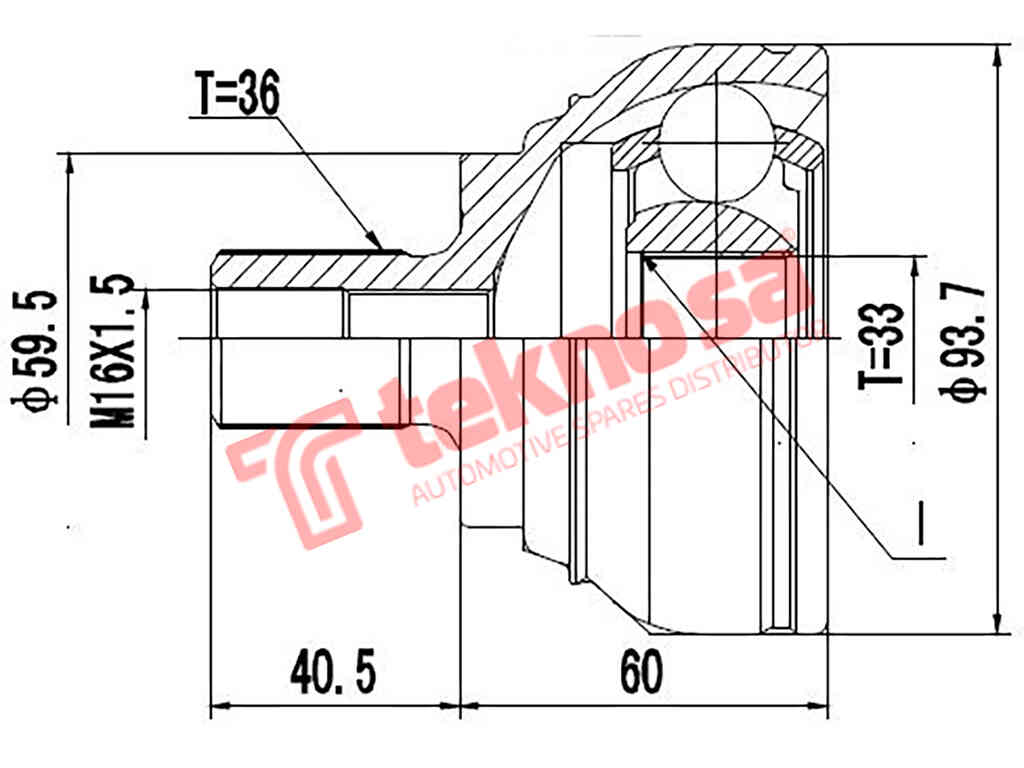 Teknosa outer cv joint 36*33*59.5 vw/audi